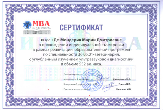 В 2019 году окончила Московскую государственную академию ветеринарной медицины и биотехнологии имени К.И. Скрябина по направлению «Ветеринарный врач».