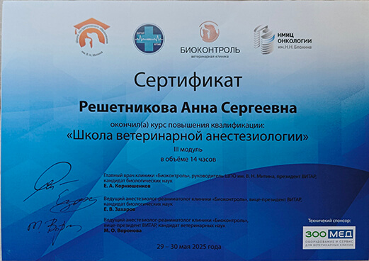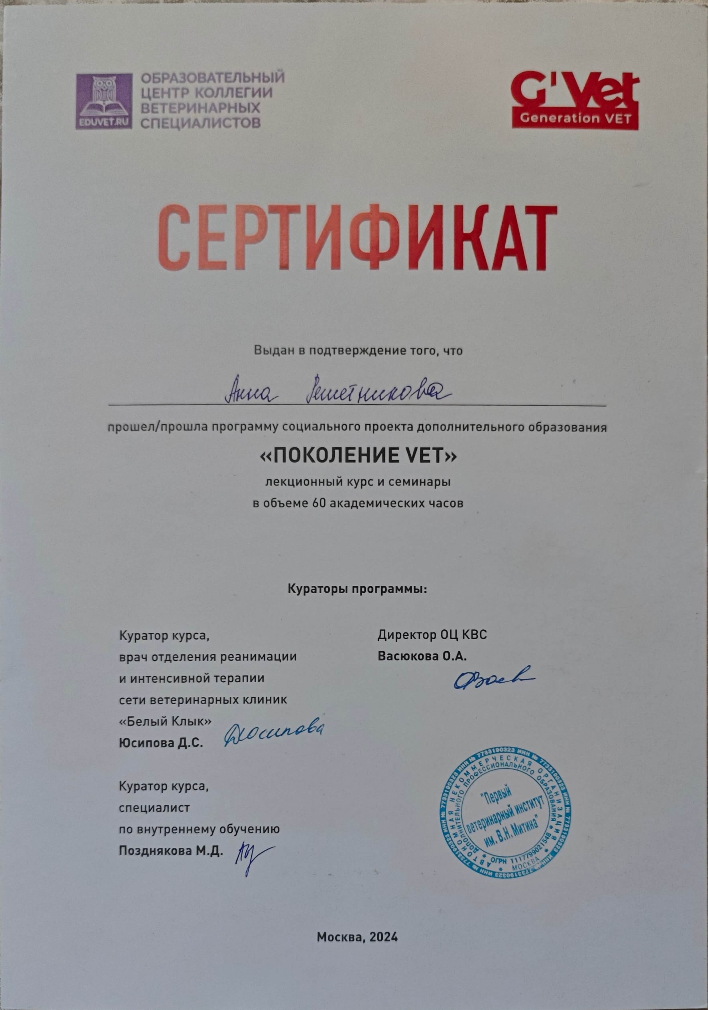 С 2021 года по настоящее время обучается в Московской государственной академии ветеринарной медицины и биотехнологии имени К. И. Скрябина, г. Москва